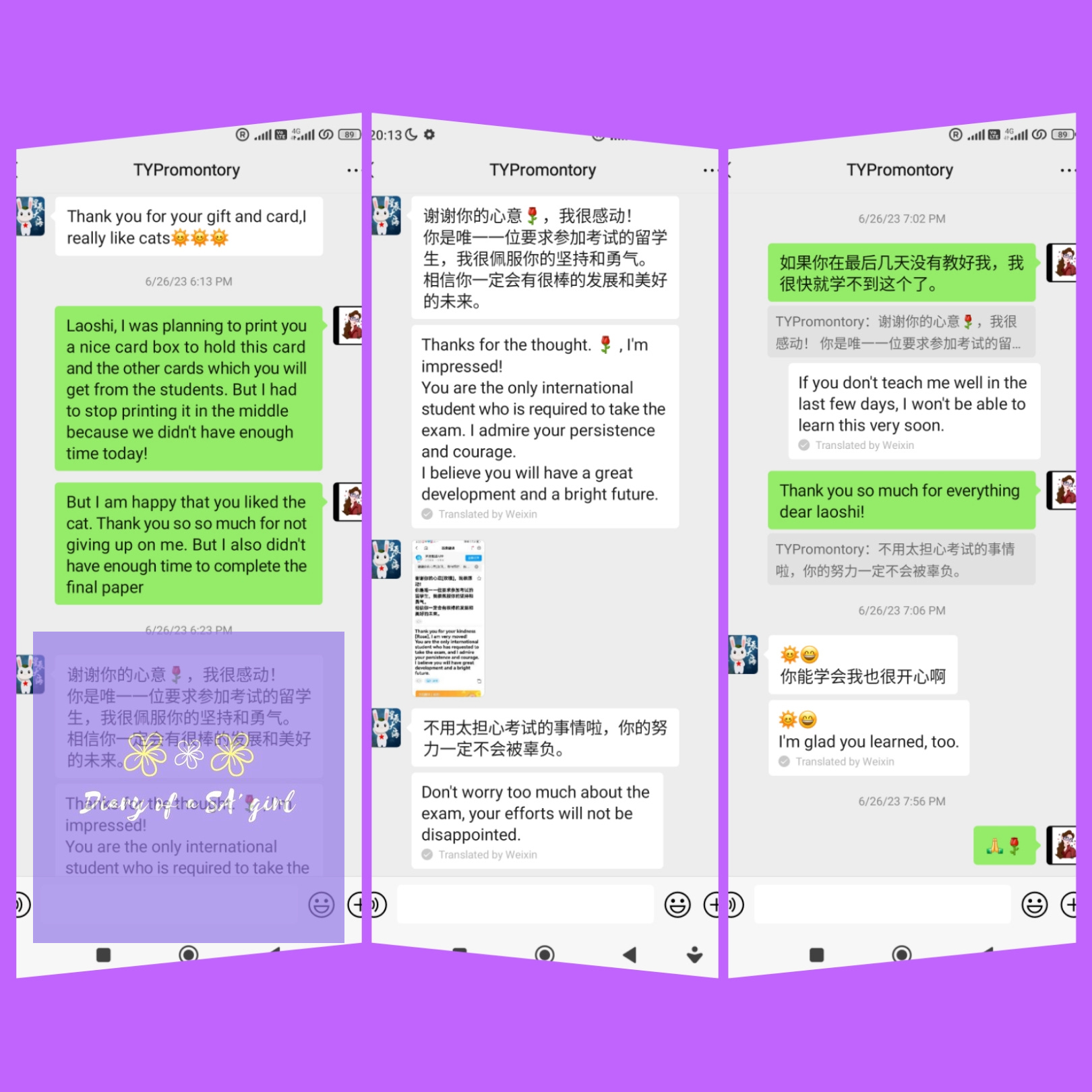 Anyway, by the end of that class, not only Li Xuan and Ming had helped me, but also so many other students. Just like we know, Chinese students are smart, intelligent, and fast. But they can be kind and helpful too. I became friends with so many Chinese students in that class.